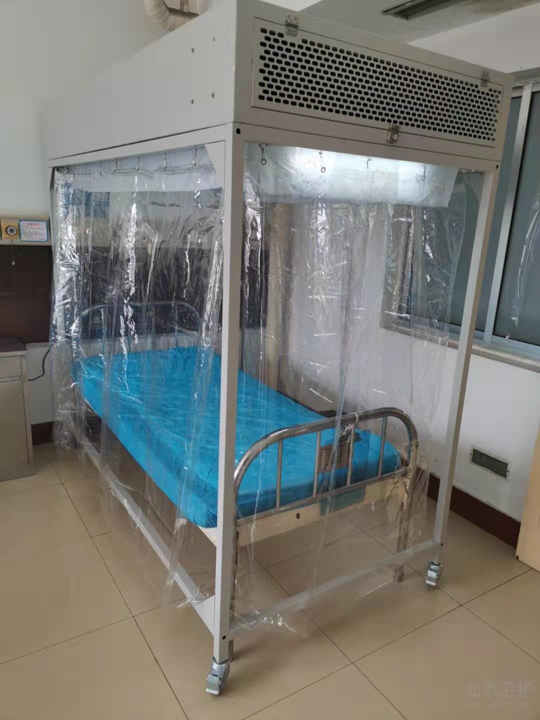 层流消毒床罩运用垂直层流的洁净送风形式,使罩内空气洁净度达到百级的洁净环境,同时罩内区域维持微正压,阻止外部污染空气进入罩内,起到无菌隔离的作用。