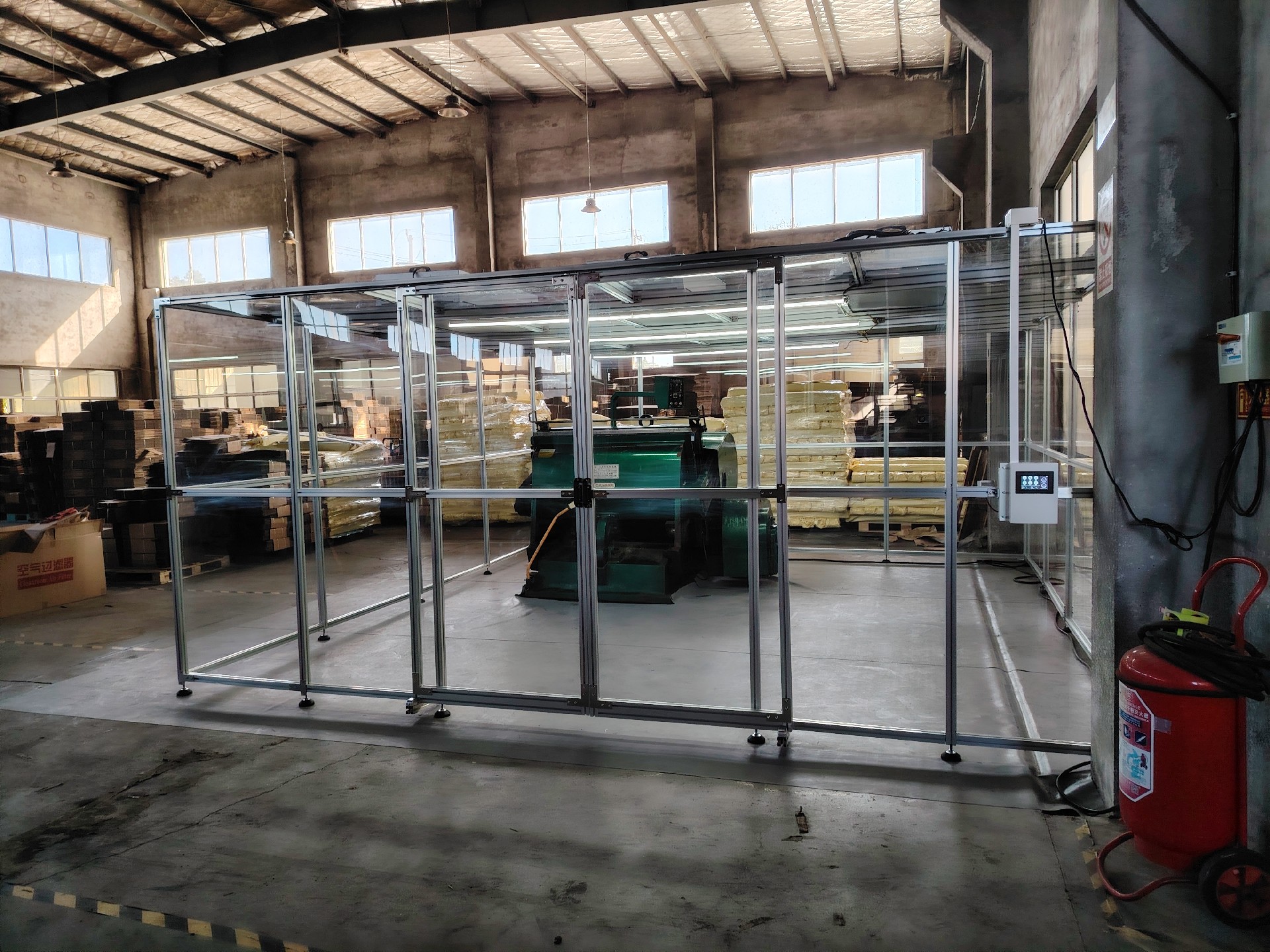 洁净棚尺寸为5000*5000*2200主体材质选用铝型材,隔离材质选用透明度高的亚格力板,搭配六个百级净化单元,经检测公司检测后可达千级标准。