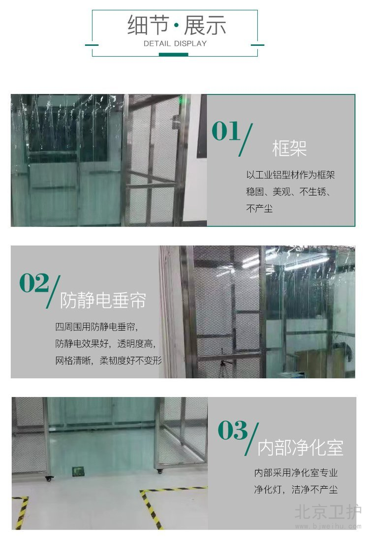洁净工作棚(简称:洁净棚)(CLEAN BOOTH)是为快速方便建立的一座简易洁净室,洁净棚具备多种洁净等级及空间搭配可以根据使用需求设计制作,因此其简便运用弹性大安装容易且施工期短以及可移性为其主要特点,洁净工作棚同时可针对在一般等级的洁净室中局部地区需要高洁净度的地方做局部增设以降低成本。洁净工作棚是一种可提供局部高洁净环境的空气净化设备。洁净棚主要由箱体、风机、初效空气过滤器、阻尼层、灯具等组成,外壳喷塑。该产品既可悬挂,又可地面支撑,结构紧凑,使用方便。可以单个使用,也可多个连接组成带状洁净区域。